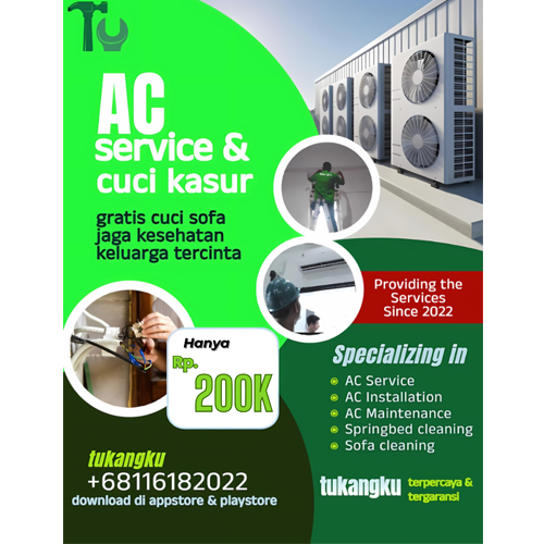 Jangan khawatir tentang masalah AC Anda lagi! Kami menawarkan layanan perbaikan AC dengan garansi 100%. Kami akan memastikan bahwa AC Anda berfungsi dengan baik sebelum kami pergi. Download sekarang dan lakukan pemesanan.